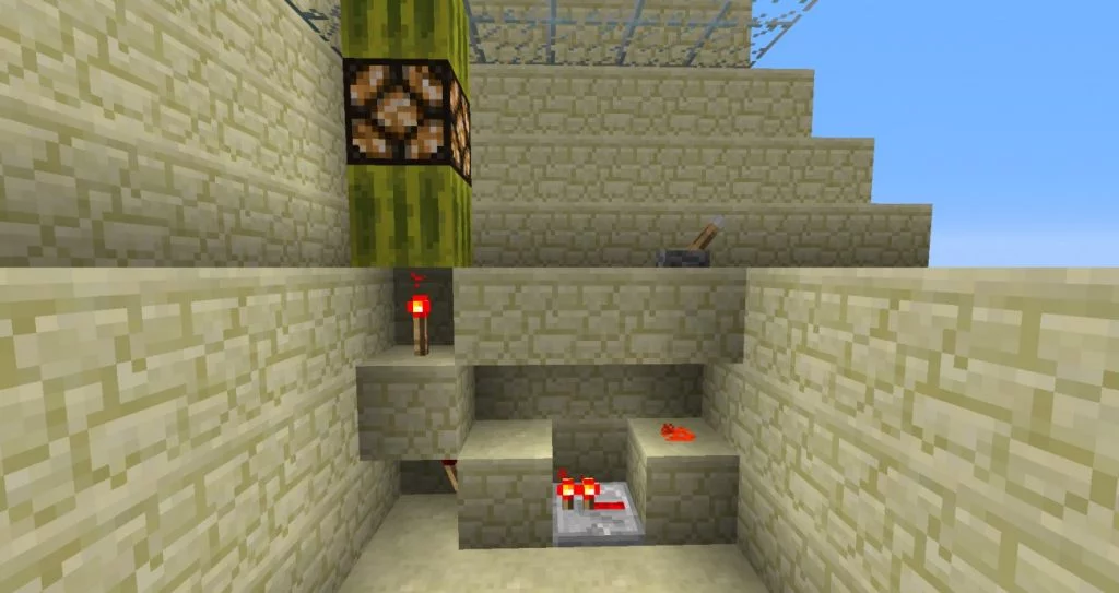 4. Es ist nicht sehr praktisch, aber es ist mal was anderes, man könnte aber auch hinter der Wand ein Redstone Signal in Richtung der Lampe machen, dann könnte sie mehr als einen Block über dem Boden sein.