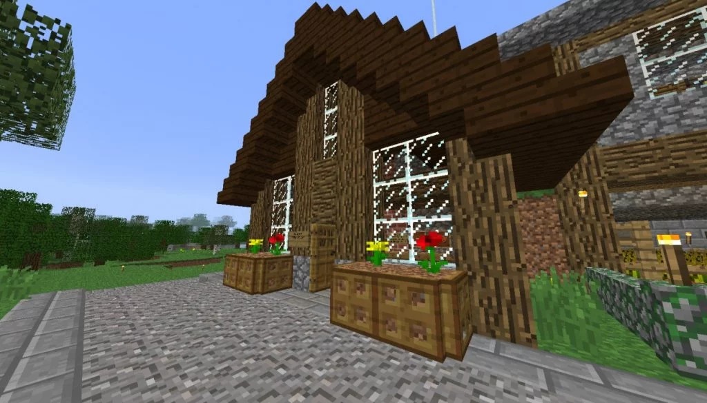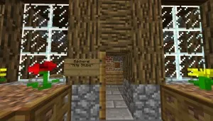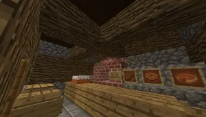 Eine kleine Bäckerei, welche wir als Ergänzung unsere RPG Welt gebaut haben. Die Bäckerei steht an einem Hügel und hat ein Dach aus Dark Oak Wood, welches ein schöner Kontrast zu dem normalem Eichenholz ist. Innen kann man gegen Goldnuggets (GN) verschiedene Backwaren kaufen.