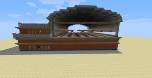 Als erstes baut man den linken oder rechten Turm des Haupteingangs und arbeitet sich dann zur jeweils anderen Seite vor, indem man zuerst die Eingänge baut und später die Bögen und anschließend den Rahmen für das Dach darübersetzt. Dann sollte zunächst nur die vordere Wand stehen. Danach baut man die Verbindungsteile und die vorderen Teile der Seitenflügel. Anschließend baut man das Dach über die Gleise und verbindet dann den Rahmen des Hauptdaches mit dem Gleisdach. In das Dach der Gleise werden nun Eisengitter abgebracht, welche nur einen Block nach unten reichen und sich alle 3 Blöcke wiederholen, sodass sie hinterher das gesamte Dach abstützen sollten. An den Seiten baut man nun Glas ein, um das Dach auszufüllen (siehe Bild 3) jedoch nur so weit, dass noch Züge hinein und hinauskommen. Abschließend können die Wände und geraden Dächer geschlossen werden. Der hintere Ausgang des Gebäudes kann wieder mit Bögen ausgestaltet werden, oder man baut den Hauptteil der hinteren Wand zu und lässt nur ein paar Blöcke frei für Bögen. (siehe Bild 4) [caption id="attachment_12904" align="alignnone" width="300"]