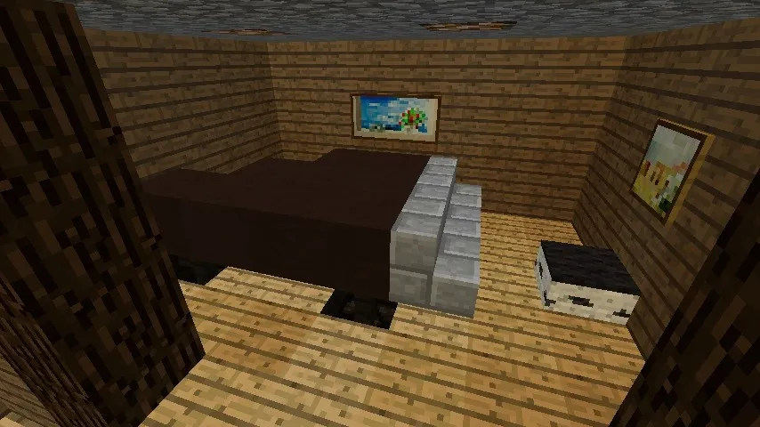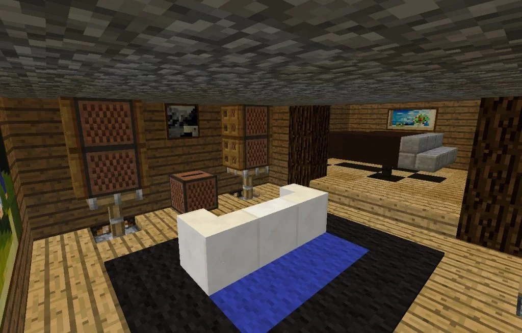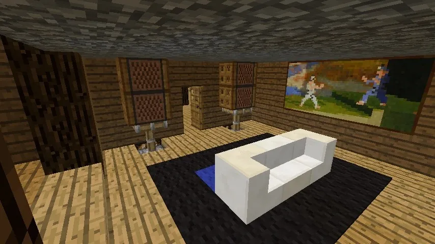 In the "main" room you do not need to explain much simple and defzdem Cool.In the adjoining room the piano is built on a floor with steps with 9 black clay underneath are fences and the stairs are stone brick stairs. Hope you like it.