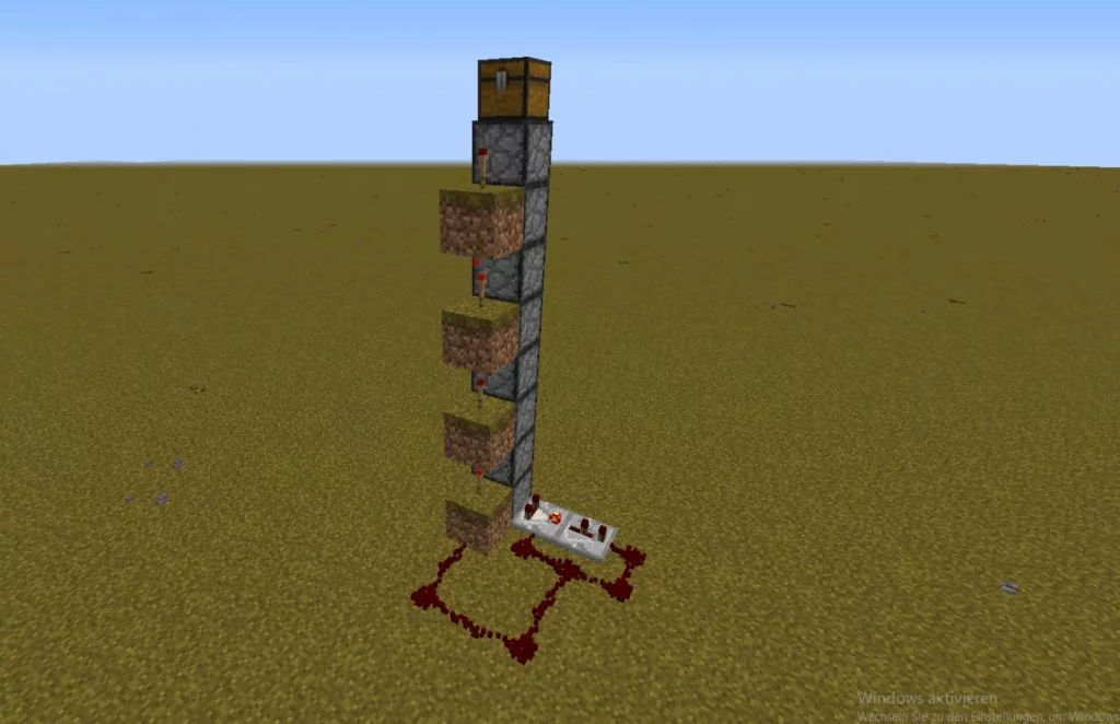 The item elevator consists of dispensers with a chest on top. If you now put items in the lowest dispenser (you can also place funnels), the items are automatically transported up.