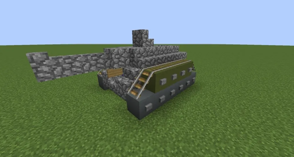 Dieser Panzer ist relativ einfach zu bauen und sogar im Survival baubar. Er kann Feuerwerkskörper bzw. Feuerkugeln abschießen.