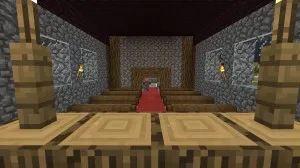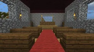 1. Das Kreuz aus Zäunen stört mich besonders, da es am Querbalken diese (ich nenns mal so) Haken hat… Das Kreuz würde ich aus Steinblöcken oder Wolle bauen, die Wände auf keinen Fall aus Bruchstein… Aber die Inneneinrichtung ist dir sehr gut gelungen!