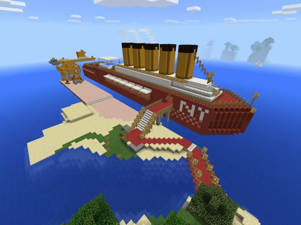 Man baut zuerst die Grundfläche direkt auf das Wasser,es muss dann einen kleinen spalt zwischen clayblock und Wasser haben. Wenn man das dann gemacht hatt kann man die wände hochziehen und den Eingang festlegen. Wenn es zu klein ist kann man immer noch individuell Sachen bzw. räume anbauen.Zum Schluss kann man die Inneneinrichtung einbauen und die räume eingrenzen. Das heißt Kajüten bauen, Restaurant, Rezeption und so weiter. Ich habe dafür gelbe, rote und schwarze clayblöcke und quartzblöcke verwendet. Man kann natürlich auch andere Blöcke verwenden das ist ganz euch überlassen.