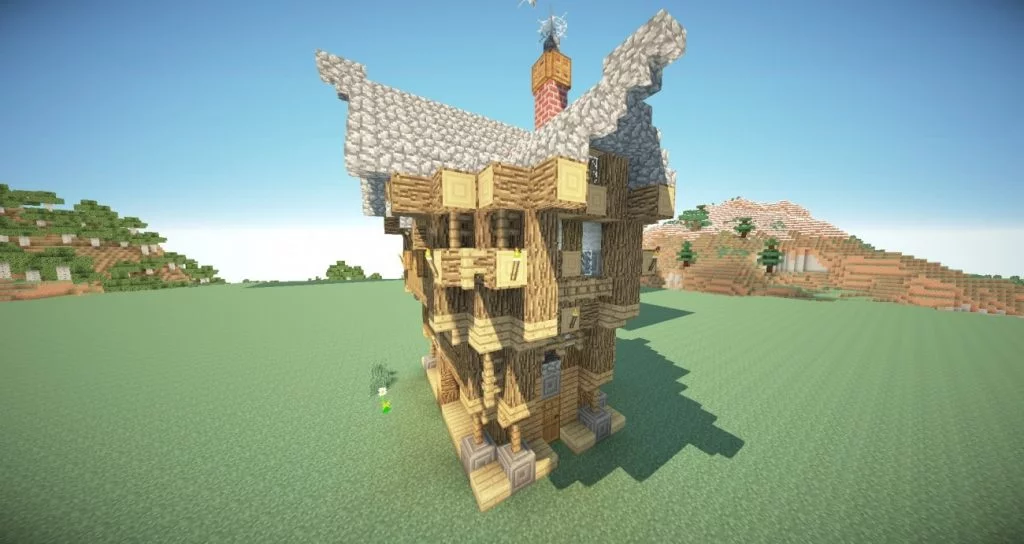 Hier ist ein Gebäude im Mittelalter Style. Ich benutze dieses Gebäude als Schneiderei. Mit einem Texturepack sieht es wesentlich besser aus durch den Mittelalter Style, deswegen solltet ihr das Video was ich von dem Gebäude gemacht habe angucken. Dazu sieht man in dem Video auch die Einrichtung:
