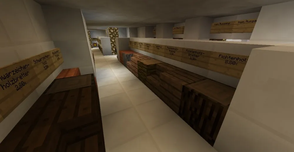 SERVER: Auf einem Server kann man das Gebäude besonders gut verwenden, dann könnte man u.A. ein Bezahlsystem (falls vorhanden) benutzen oder das Kisten-Shop-System verwenden. Die Kisten könnten an Stelle der Beispiel-Produkte stehen. Bei Fragen wendet euch an mich!