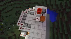 Mit dem Knopf, der an der Decke nahe dem Verzauberungstisch hängt, lässt sich dank einem simplen T-Flip-Flop, das Licht und die Kolben einfach einschalten und ausschalten.