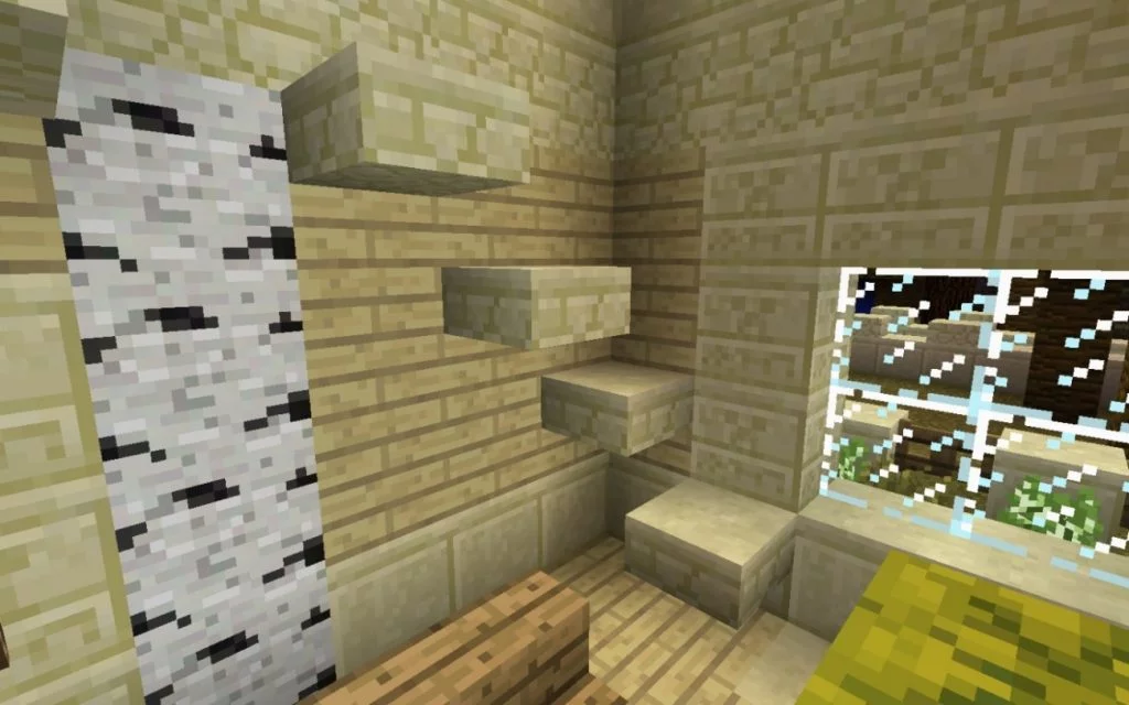 Eine Treppe aus Stufen, allerdings mit nur halb so vielen Stufen wie normalerweise. Dadurch verbraucht die Treppe weniger Platz und sieht interessanter aus, dafür muss man bei jeder Stufe springen.