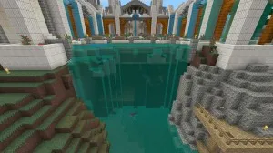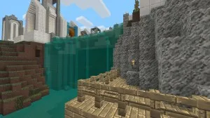 Hier miene erste Bauidee! Es handelt sich um einenSchiffbauplatz im Berg, der hinter einem Wasserfall versteckt ist.