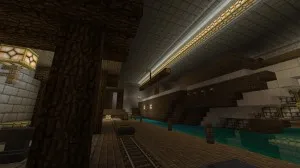 Am Ende der linken Wandseite befindet sich noch eine Treppe die noch demnächst zu einer Miene führen soll. Vielleicht werde ich dann noch ein Schienensystem einführen, dass von der Miene raus zu dem Schiffbauplatz führt.