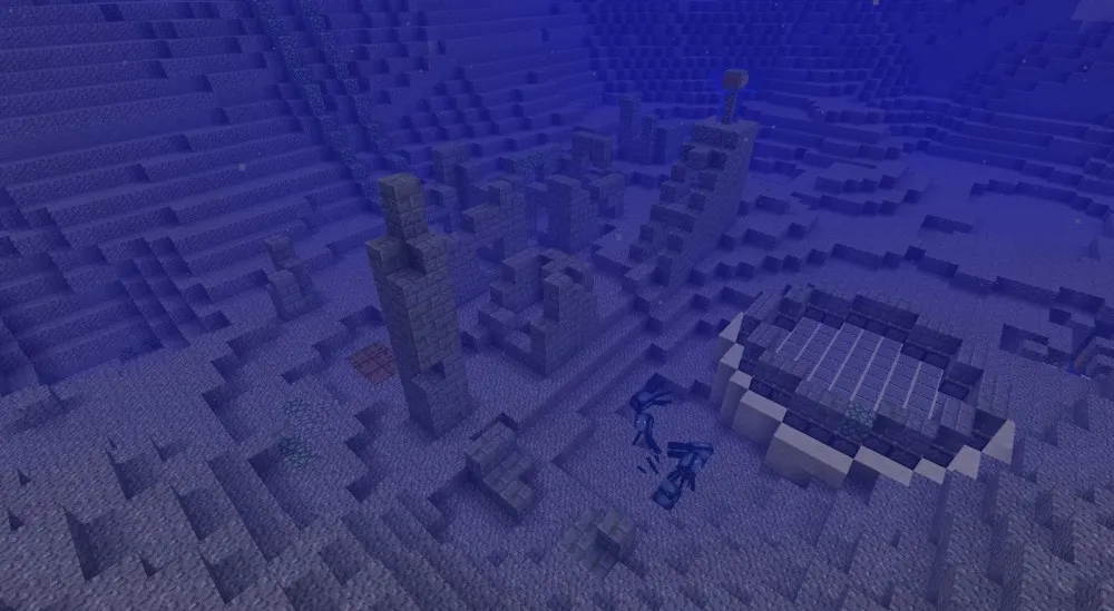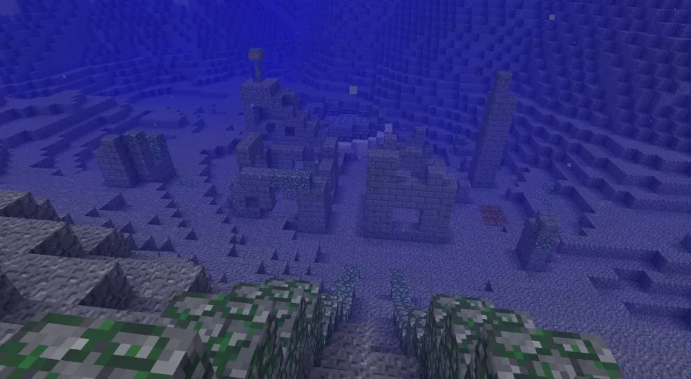 Diese Stadt sank vor langer Zeit unter. Ihre Schätze mit ihnen. Als Taucher kann man diese Schätze bergen oder in einer Adventure Map dort eine Quest erfüllen. Oder einfach nur Dekoration. Mit Trank der Unterwasseratmung auch ganz einfach in Survival baubar!